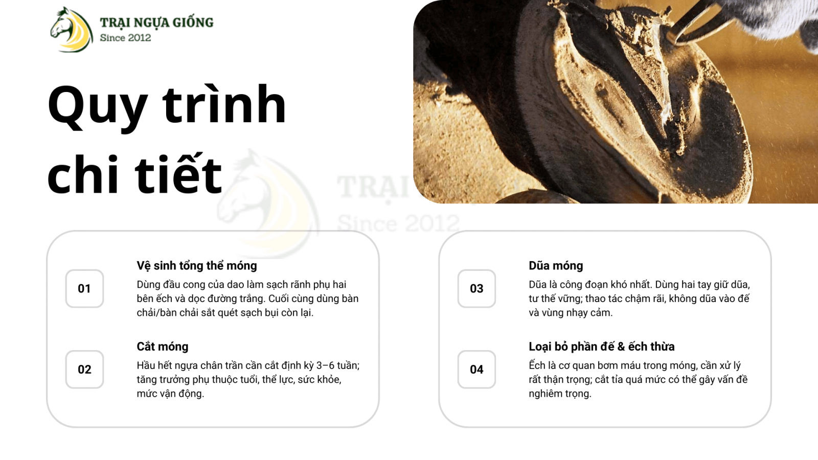 Móng ngựa là một trong những bộ phận quan trọng nhất của cơ thể ngựa. Hãy tìm hiểu cách cắt tỉa móng ngựa đúng cách để tránh những vấn đề phát sinh sau này.